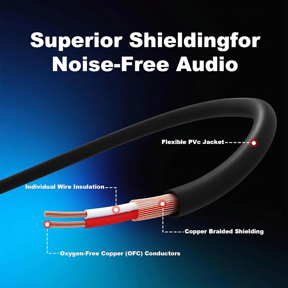 Heavy-Duty 25 AWG Cable – Features a thick 25-gauge conductor for superior conductivity, enhanced durability, and consistent audio signal.