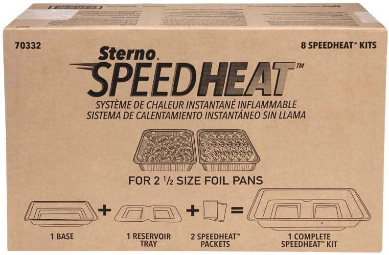Sterno 70332 SpeedHeat Flameless Food Warming System Kits for Catering, Each Kit Fits Two Half Size Foil Pans (Set of 8 Kits)