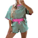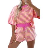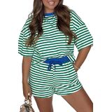 ☆Design:This Loungewear tracksuit set for women for Women features a classic ,short sleevepullover tops,drop shoulder,pants with elastic waist,wide leg crop pants,High Waist,Pockettwo pockets,striped,loose fit,create a relaxed and slouchy silhouette.The top and bottom can also be worn separately.The Two Piece Sets for Women are suitable for all women to wear.
