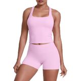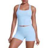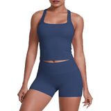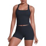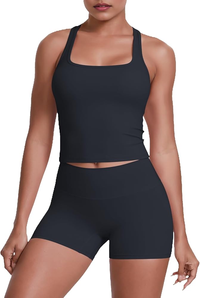 Flattering U-Neck & Racerback Design:The tank top features a U-neck for a sleek look and a racerback design for maximum mobility. High-waist shorts offer tummy control and a sculpted fit.