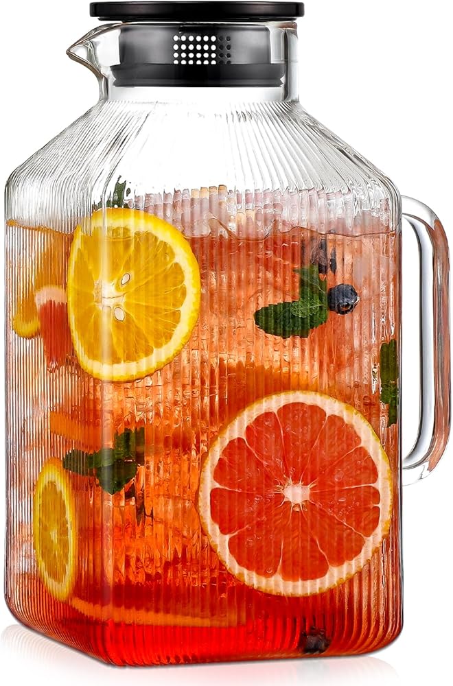 Vertical Stripe Square Patent Design: Stand out with our timeless vertical stripe design – a perfect blend of vintage charm and modern functionality. Unlike ordinary round pitchers, the square design maximizes refrigerator space while adding a touch of geometric elegance to your table. Handcrafted for those who appreciate details, extra-large capacity 1 gallon, 1 pack
