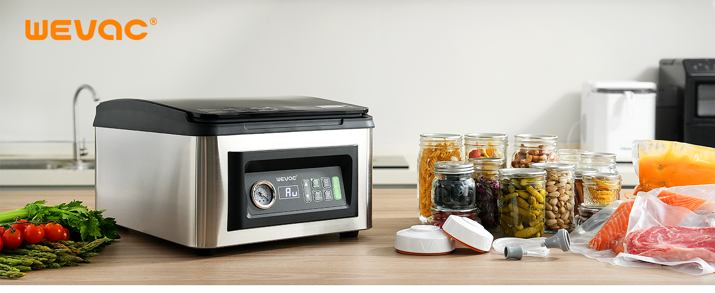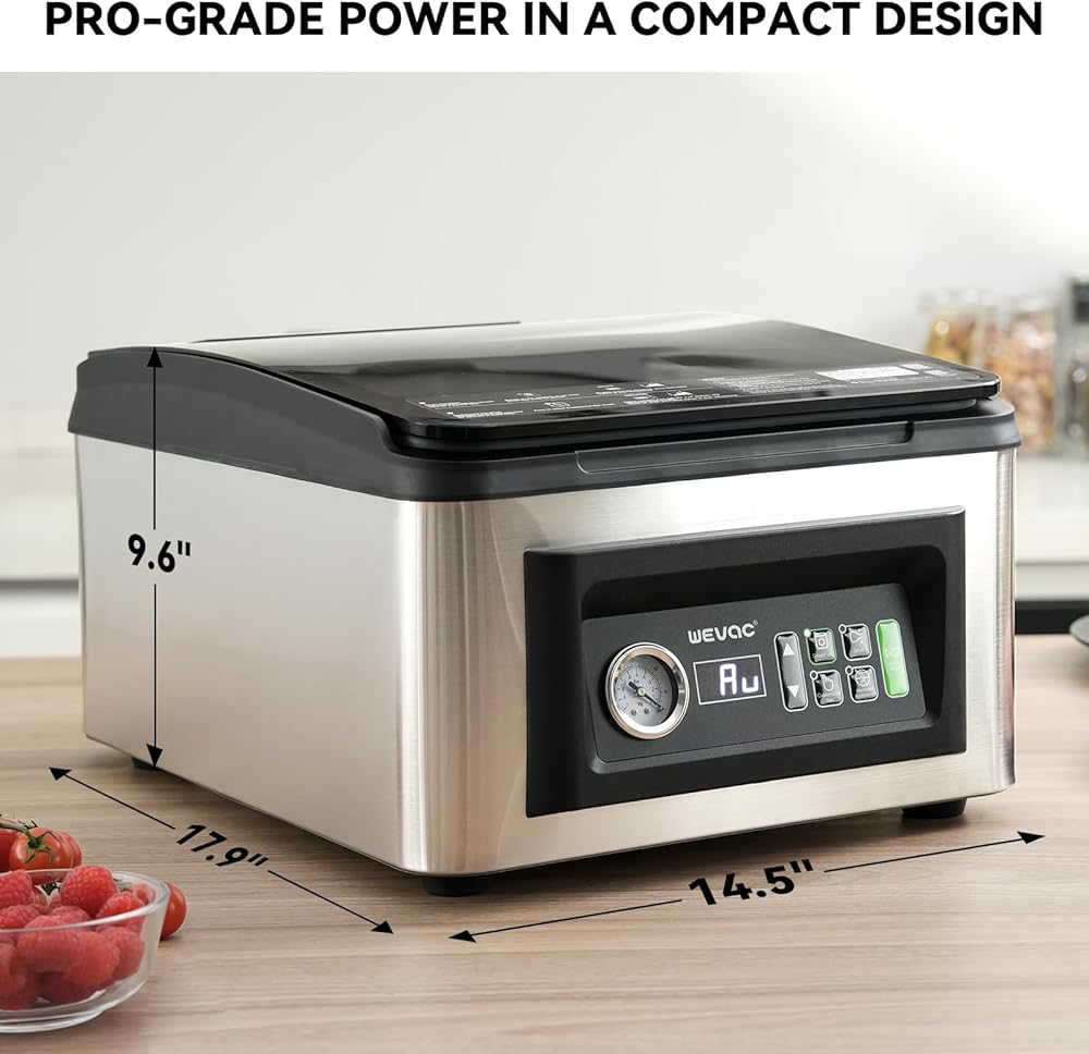 Wevac Chamber Vacuum Sealer, 12" Seal Bar, Auto Vacuum Time, Deep Chamber with Easy-Clean Design, Commercial-Grade for Meats, Liquids, Soups, Sous Vide & Mason Jars, CV12 Pro