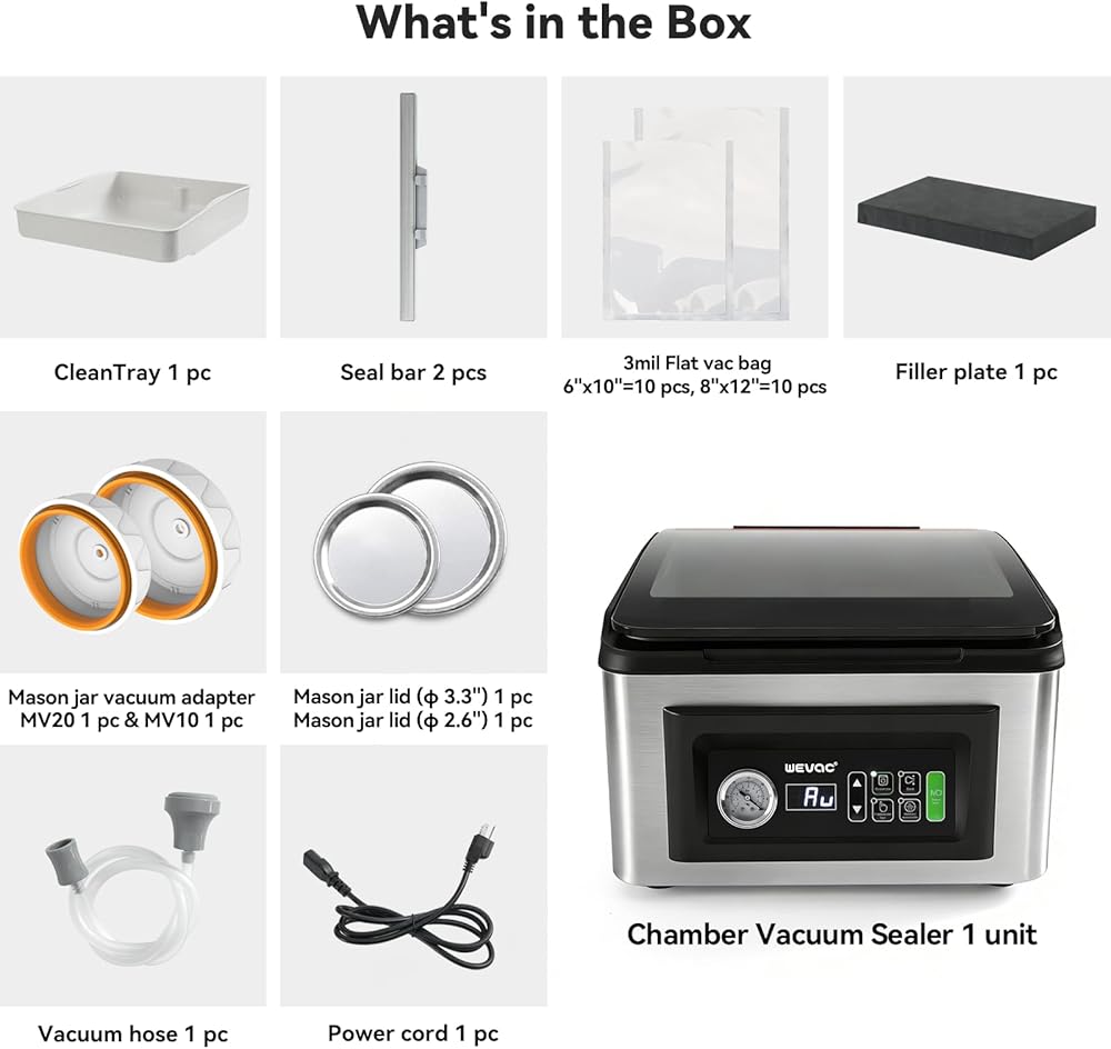 Versatile External Vacuuming Solution: Includes an accessory hose and two dedicated Mason jar adapters to expand your preservation options. Easily switch from sealing liquid-rich bags in the chamber to vacuuming jars and canisters externally with ease