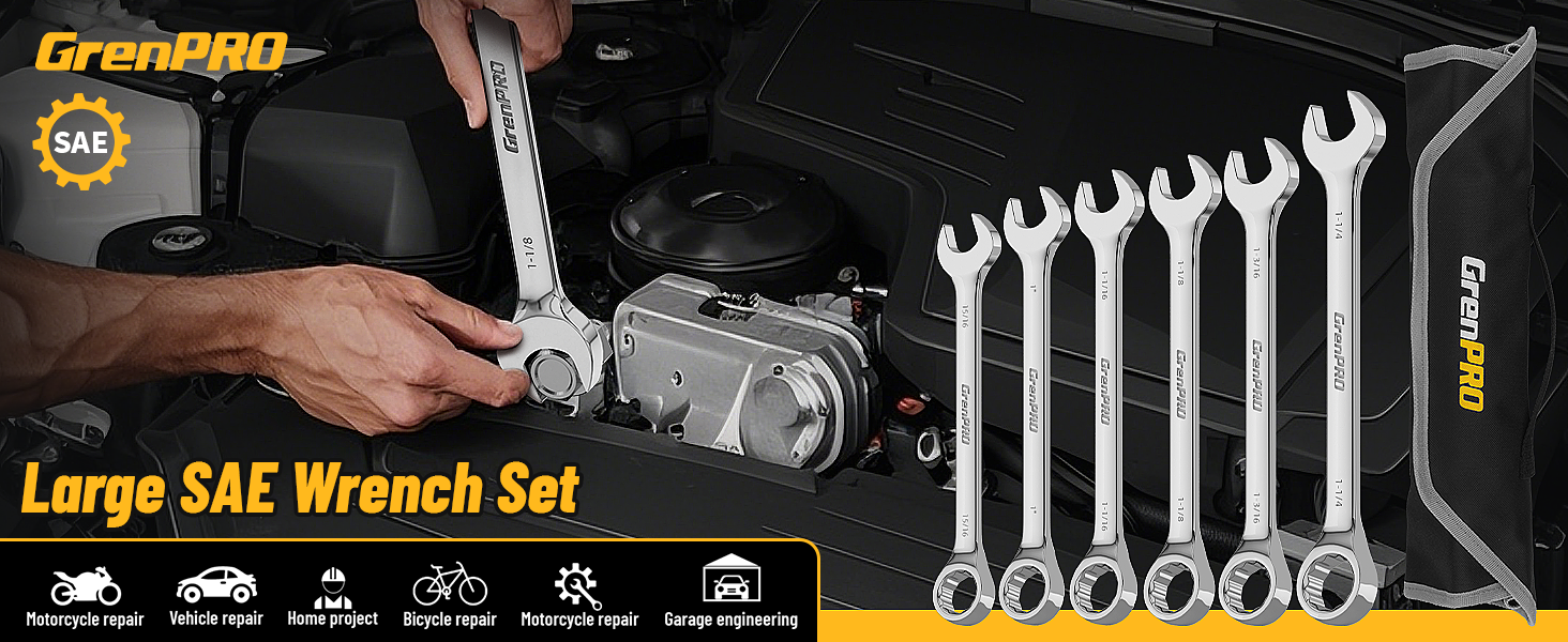 GrenPRO combination wrench sets have a wide range of application scenarios, including motorcycle repair, auto repair, home projects, bicycle repair, machinery repairs, garage engineering, and so on.If you have any questions, please contact us. We are willing to serve you attentively
