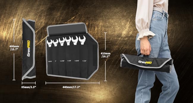 Large wrench set comes with a durable Oxford cloth storage bag.The size of each wrench is printed on the tool roll box for easy organization and storage.Portable handheld tool bag effectively improves your work efficiency in the long term