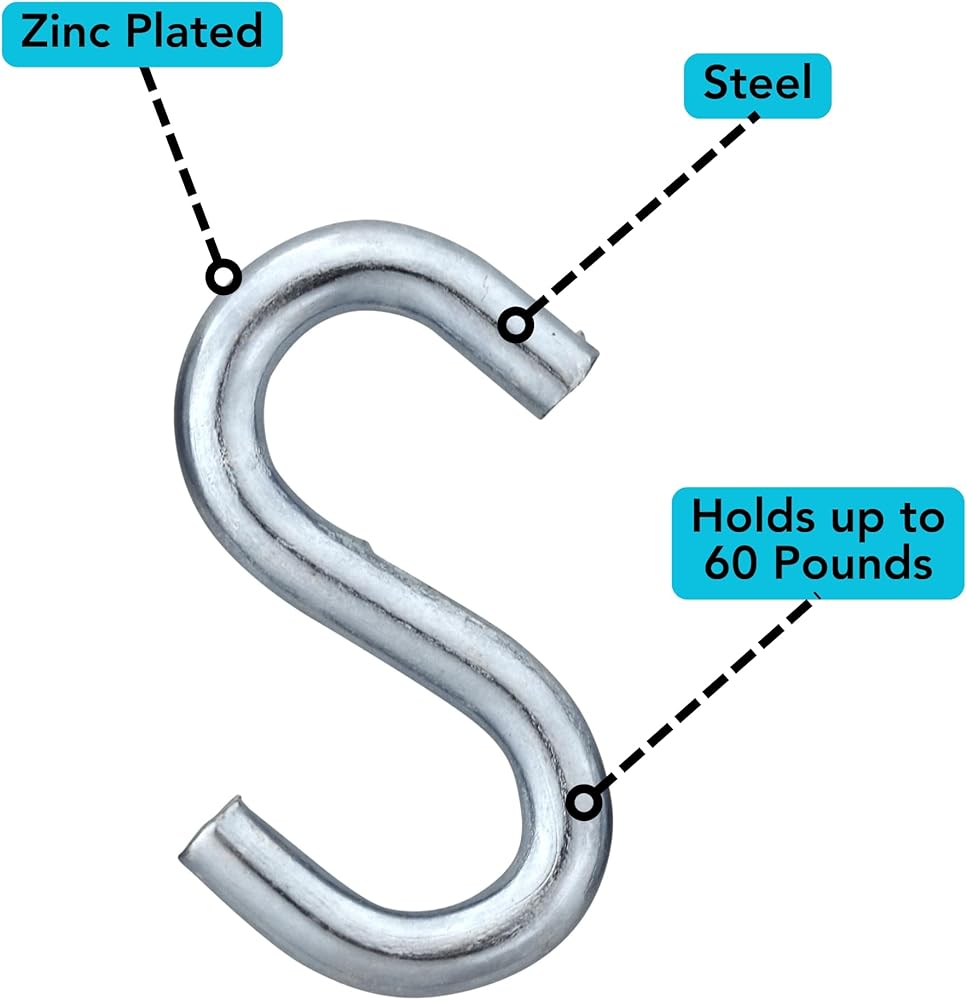 Versatile Hardware: These 36 zinc-plated steel S-hooks offer a 60-pound capacity for versatile indoor/outdoor use.