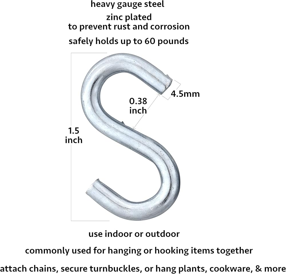 Convenient Size: Each S-hook measures 1.5 inches in length, suitable for hanging tools, plants, and more.