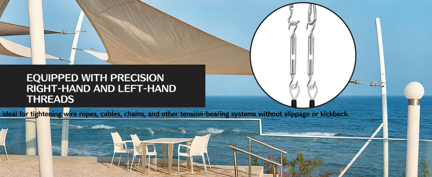 High-Quality Material: Turn buckle tensioner is made of high-strength stainless steel, which has excellent corrosion resistance and can effectively reduce oxidation and rust. Whether in a humid environment or exposed to sunlight for a long time, it can maintain its performance and appearance.