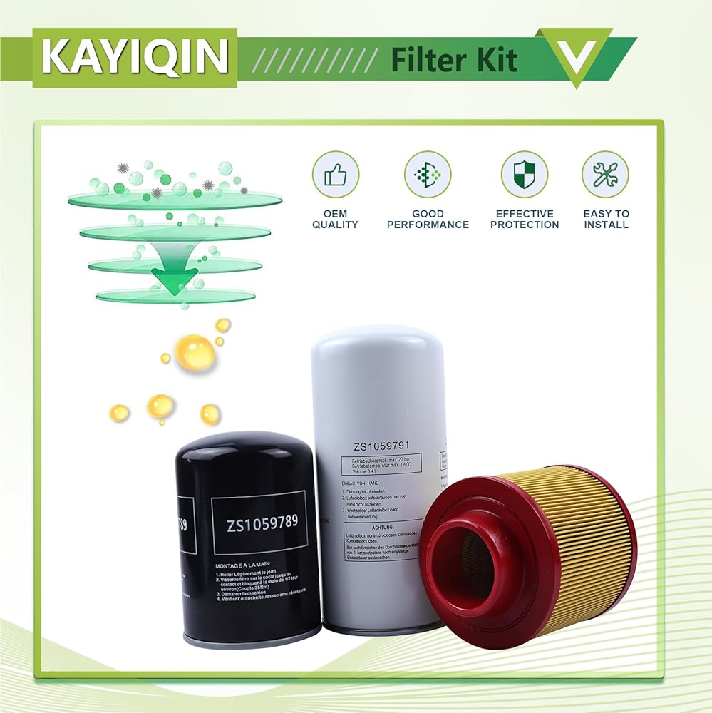 Filter Kit Compatible with ZS1059791 KAYIQIN Air/Oil Separator + ZS1059789 Oil Filter + ZS1060578 Air Filter Air Compressor Replacement Parts