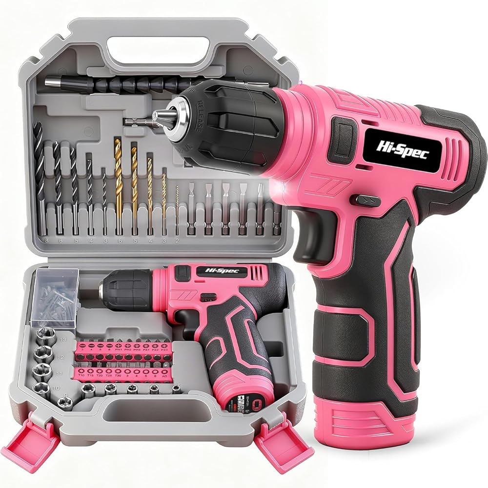Tool Set for Women, Pink Easy Screwdriving: A rechargeable electric screw driver simplifies furniture assembly and household tasks; 3.5Nm of torque ensures secure fastening; USB charging for convenient power on-the-go