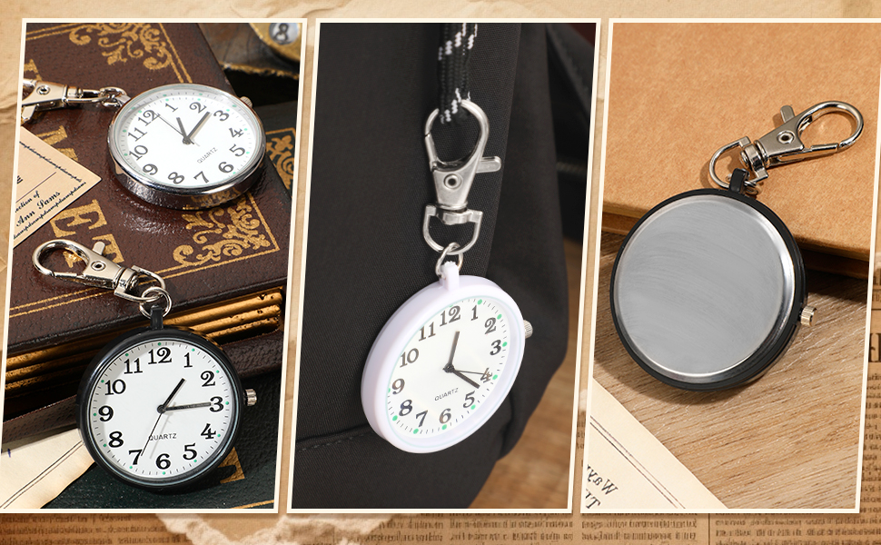 Versatile Clip-On Design: The pocket watch sturdy metal clip attaches to backpacks, purses, or clothing; slim size fits in pockets, hooks, or suitcases—free your hands from checking phones