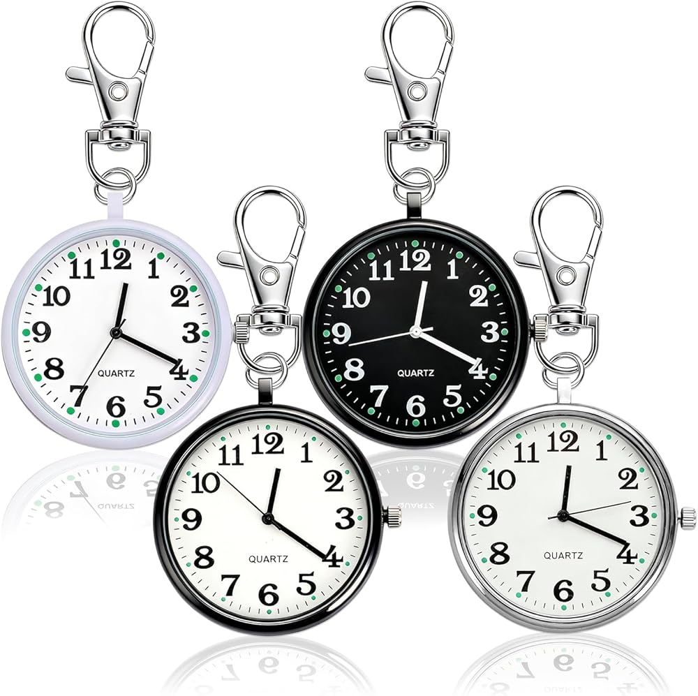 Quartz Pocket Watch, Portable Clip on Watch with Keychain Outdoor for Men and Women