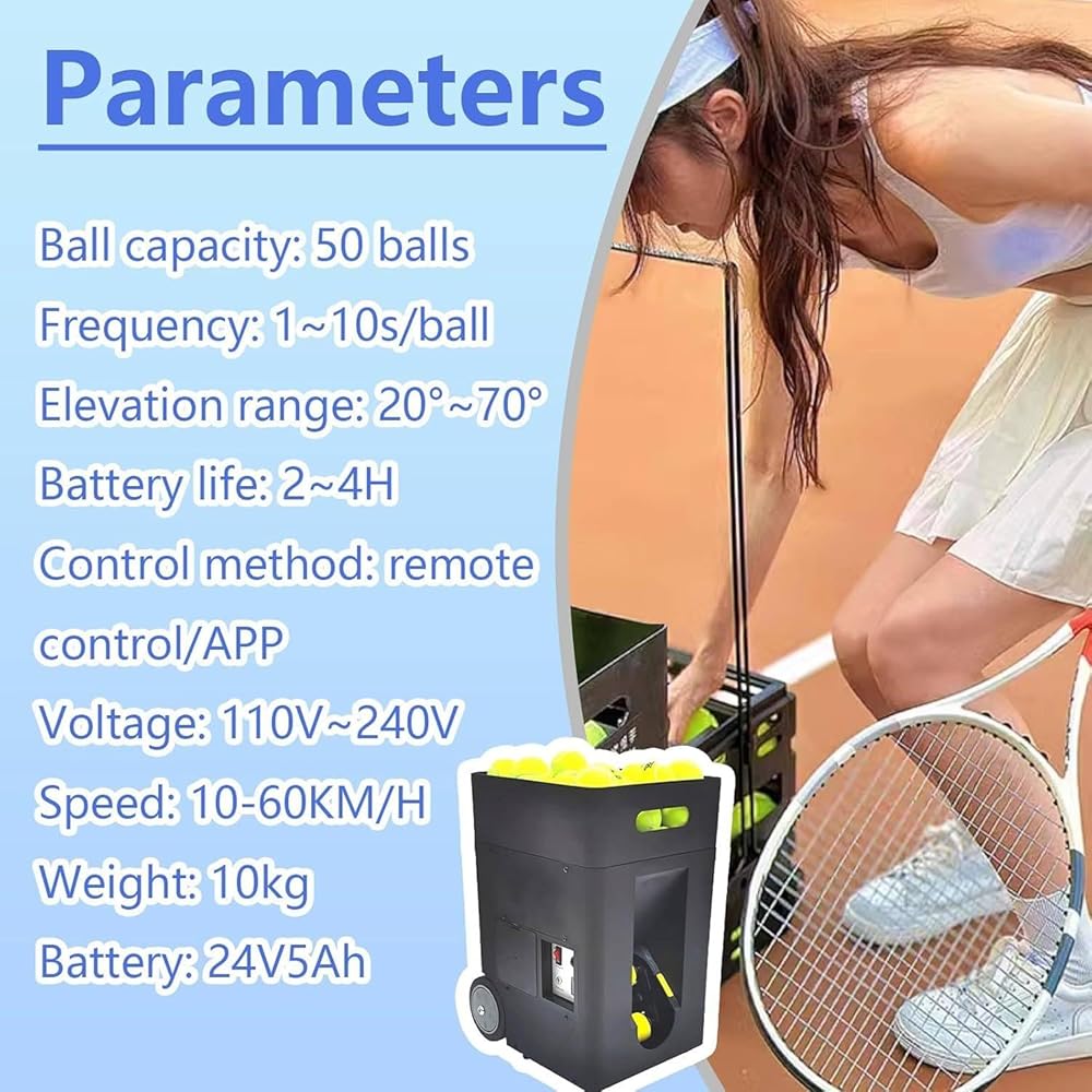 Portable Tennis Ball Machine, Automatic Tennis Ball Launcher, Speed, Rotation Frequency, with Remote Control Adjustable Launch Angle, Large Capacity 50