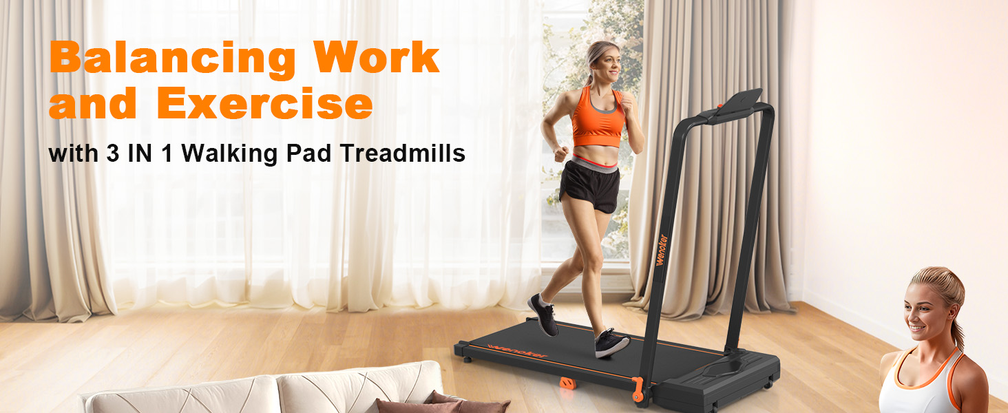 [3 In 1 Under Desk Treadmill] Wenoker treadmill offers a speed range from 0.6 to 7.5 mph. When the riser is folded, it can be used as a jogger, you can enter the leisure mode 0.6-3 MPH and walking mode 0.6-4 MPH, when the handrail is raised, the running mode runs at 5-7.5 MPH.