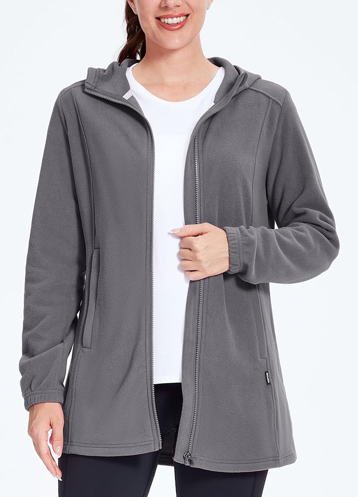 ULTIMATE WARMTH: Designed With a full zip hooded and long form style, this Women's fleece hoodie provides better coverage and warmth on chilly days. Center Back Length: 30"