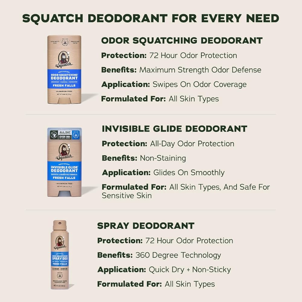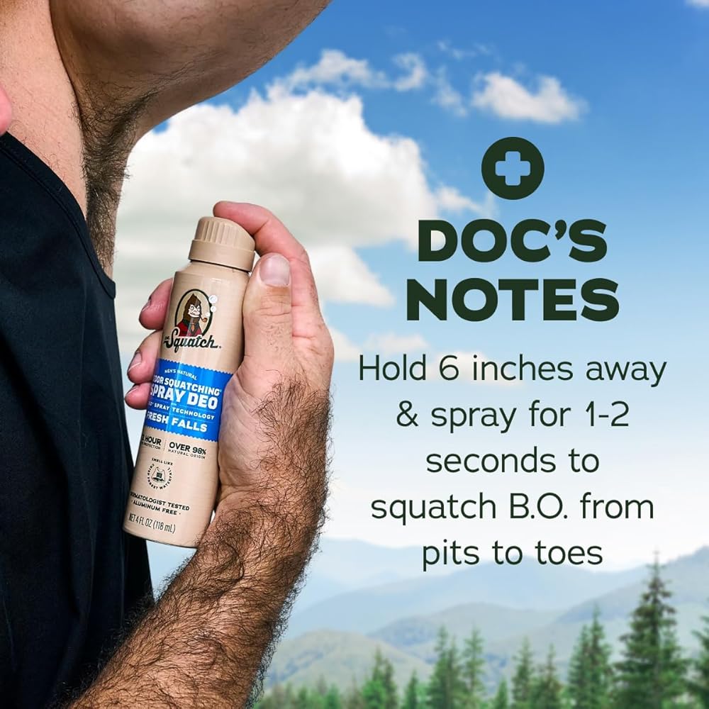 Dr. Squatch Spray Natural Men’s Deodorant – Quick Dry Deodorant Men, Aluminum Free, Dermatologist-Tested – Created for all Skin Types – Fresh Falls, 4oz (2-Pack)