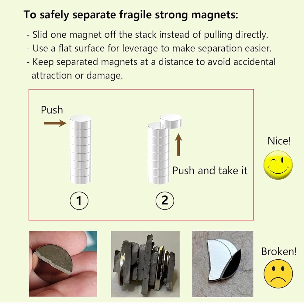 【Handle Carefully】- Strong magnets can pinch fingers. When separating large magnets, do it the right way to avoid breaking them. Keep them away from pacemakers and children for safety.