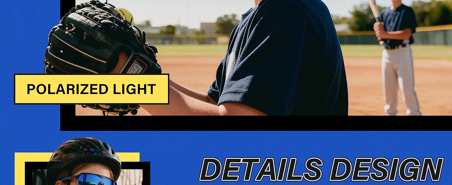 Polarized UV400 Protection for Active Kids:These Kids Sunglasses are equipped with Polarized lenses offering 100% UV400 protection to keep your child's eyes safe from harmful UVA and UVB rays. Perfect for sports activities like baseball, softball, running, and cycling, ensuring clear vision and maximum eye protection.
