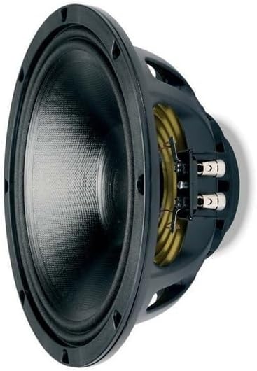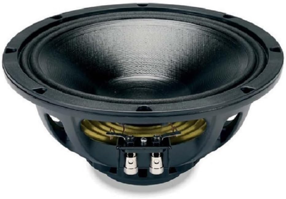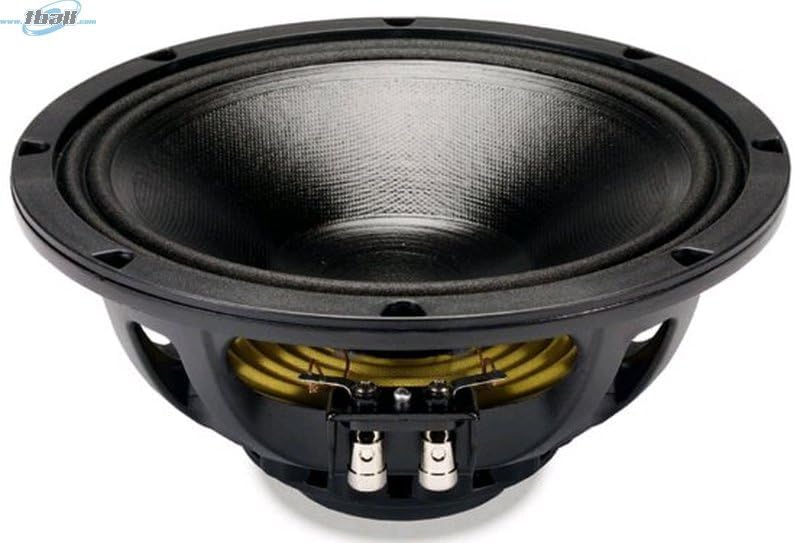 18 Sound 10NMB420 10-inch High Output MB Neodymium Woofer 8 ohms with Weather Protected Cone and Plates for Suitable for Outdoor Usage || * 99 dB SPL 1W / 1m average sensitivity || * 65 mm (2.5 in) Interleaved Sandwich Voice coil (ISV) || * 350 W AES power handling || * External neodymium magnet assembly || * Single Demodulating Ring (SDR) for lower distortion || * Weather protected cone and plates for outdoor usage || * Suitable for line arrays and compact two way systems || || The 10NMB420 neodymium transducer has been developed in response to a specific market requirement for a 10-in midbass driver that combines excellent linearity with good efficiency and high power handling capabilities. The 10NMB420 is primarily intended for use as a midbass driver in line-arrays as well as high quality 2-way or multiway reflex enclosures. The low pass filter might be positioned as high as 2000Hz. || The extremely powerful external neodymium magnet assembly assures high flux concentration, low power compression and excellent heat exchange. The levels of force factor and power handling are, as a consequence, at the upper professional level with best power to weight ratio. The 65mm of state-of-the-art, aluminum wire voice coil employs Interleaved Sandwich Voice coil (ISV) technology. || It is composed by a high strength fiberglas former used to carry windings on both the outer and inner surfaces, in order to achieve a mass balanced coil. This results in an extremely linear motor assembly which, in conjunction with the highly advanced design of the magnetic structure, provides a high BL force factor. The voice coil is cooled through airways placed between the chassis back plate and the magnet faceplate. In this way heated air is channeled away from the voice coil and the gap. || Another technology present into the 10NMB420 is the SDR (Single Demodulating Ring), used to reproduce instantaneous peak on mid frequencies, reducing intermodulation distortion. Thanks to the increasing use during outdoor audio events, the ability to perform in humid environments is an extra key feature of the 10NMB420. This is achieved trough an exclusively developed cone treatment which renders the cone humidity repellent while does not increasing the total moving speaker mass.