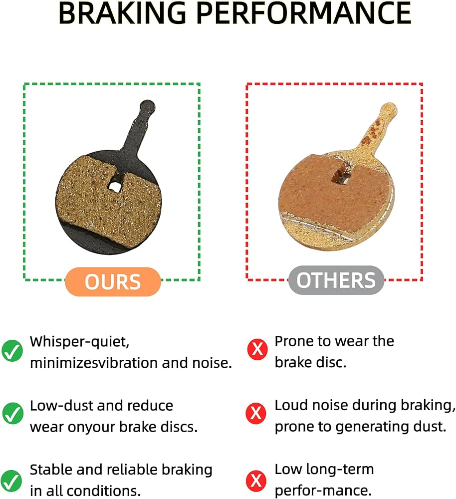 Low-Dust for Cleaner Wheels – Our electric bike brake pads virtually eliminates dust buildup, keeping your rims spotless and maintaining your dirt bike's sleek look without constant cleaning. Say goodbye to messy brake dust!