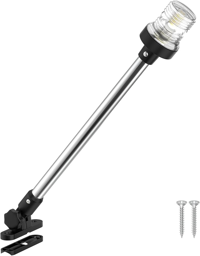 IP67 Waterproof Marine Grade: IP67 waterproof and 304 stainless steel pole withstand exposure to saltwater and harsh conditions; the boat stern light support reliable use during fishing, boating, and night sailing activities