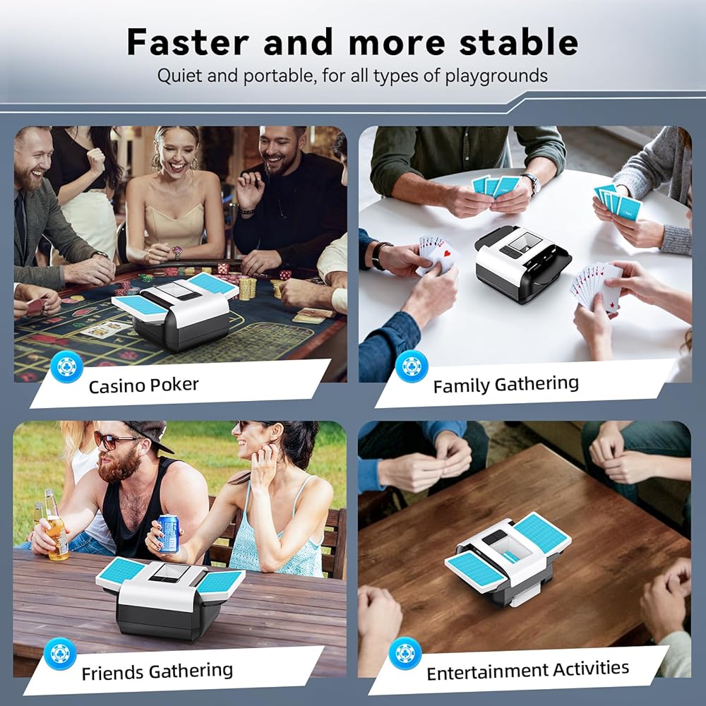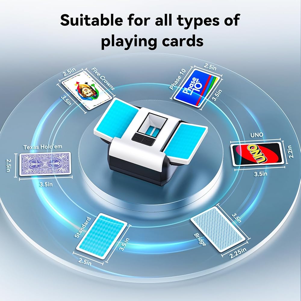 • Perfect Gift for Card Players – Lightweight, portable, and stylish, this rechargeable card shuffler makes a thoughtful gift for fathers, friends, or anyone who enjoys card games. Ideal for birthdays, holidays, or casino-themed parties.