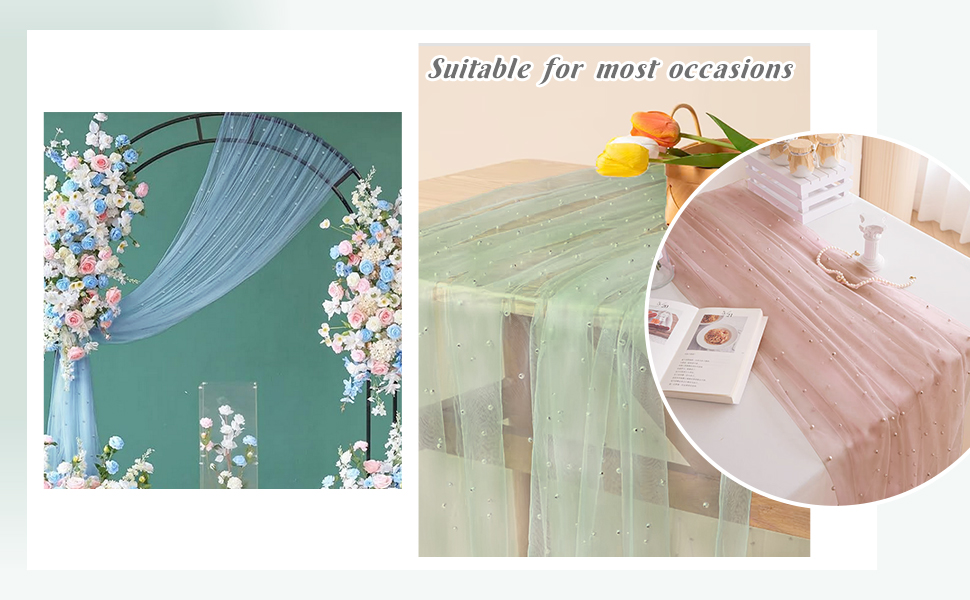 【Wide Range Of Uses】These elegant gauze table runners are suitable for most occasions. They also can be used as arches, tables and chair decoration, birthday party, baby shower, and more parties decoration. You can also purchase them as gift wrapping for Christmas, New Year, Valentine's day, birthday, Thanksgiving Day.