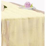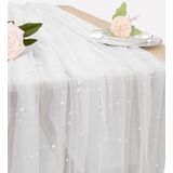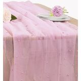 【Exquisite Workmanship】 These romantic table runners are made of premium tulle. Soft feeling, sheer, reusable, easy to clean and fade resistant. Delicate pearls embellished table runner works perfectly for many types of event decor, which will add a ton of elegance to any space.