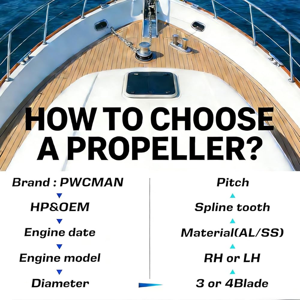 To choose your propeller, we kindly advise you to confirm your own propeller's (1) brand, (2) diameter, (3) pitch, (4) rotation, (5) OEM number, (6) the engine date to be matched by the propeller, (7) HP (8)Spline Tooth from the manufacturer before the purchase.