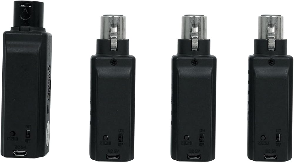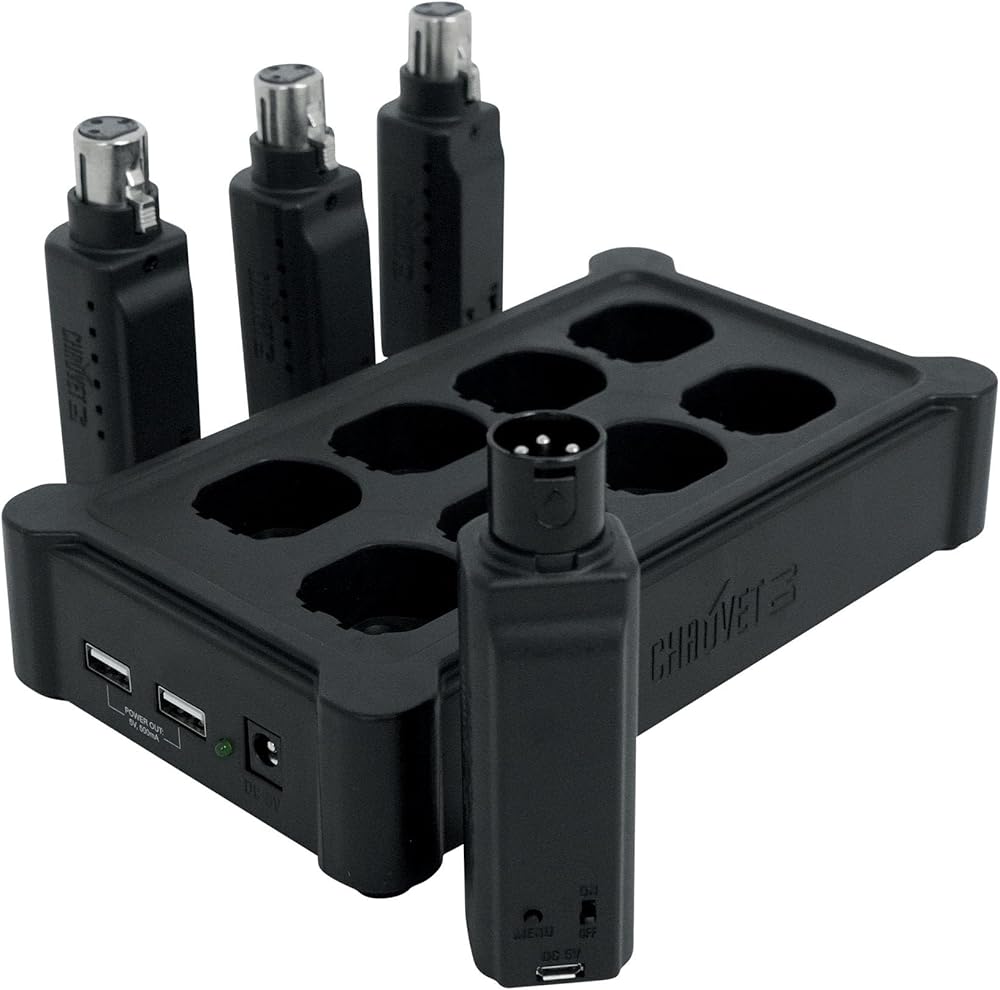 Package Includes: (1) Chauvet D-Fi XLR Pack w/(3) Receivers+Charger Turns DMX Lights into Wireless DMX. (1) Pair Rockville RPB3-BLACK Handheld Wireless Linking Portable Bluetooth Speakers. 1 D-Fi XLR TX. 3 D-Fi XLR RX. 1 Multi Charger. External power supply. Quick Reference Guide. Wireless communication pack includes 1 transmitter, 3 receivers and 1 multi-charger