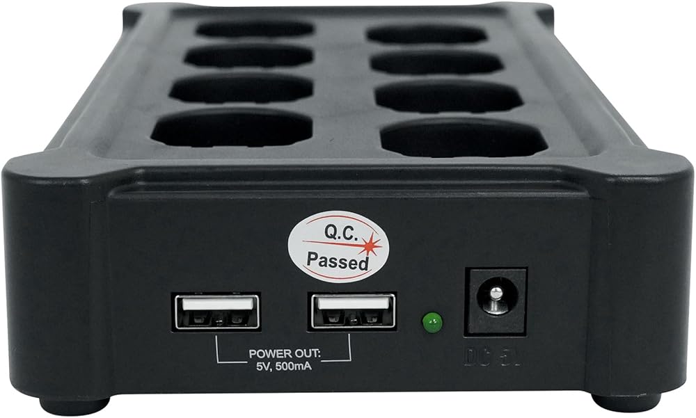Multi-charger simultaneously charges up to 8 D-Fi XLRs (additional units sold separately). Contact pins charge all D-Fi XLRs without the need for any cables. Includes 2 additional USB ports to charge additional devices. Input Voltage:5 VDC, 500 mA (external power supply: 100 to 240 VAC, 50/60 Hz). Power and Current:19 W, 0.3 A @ 120 V, 60 Hz. Approvals:CE, FCC, RTTE