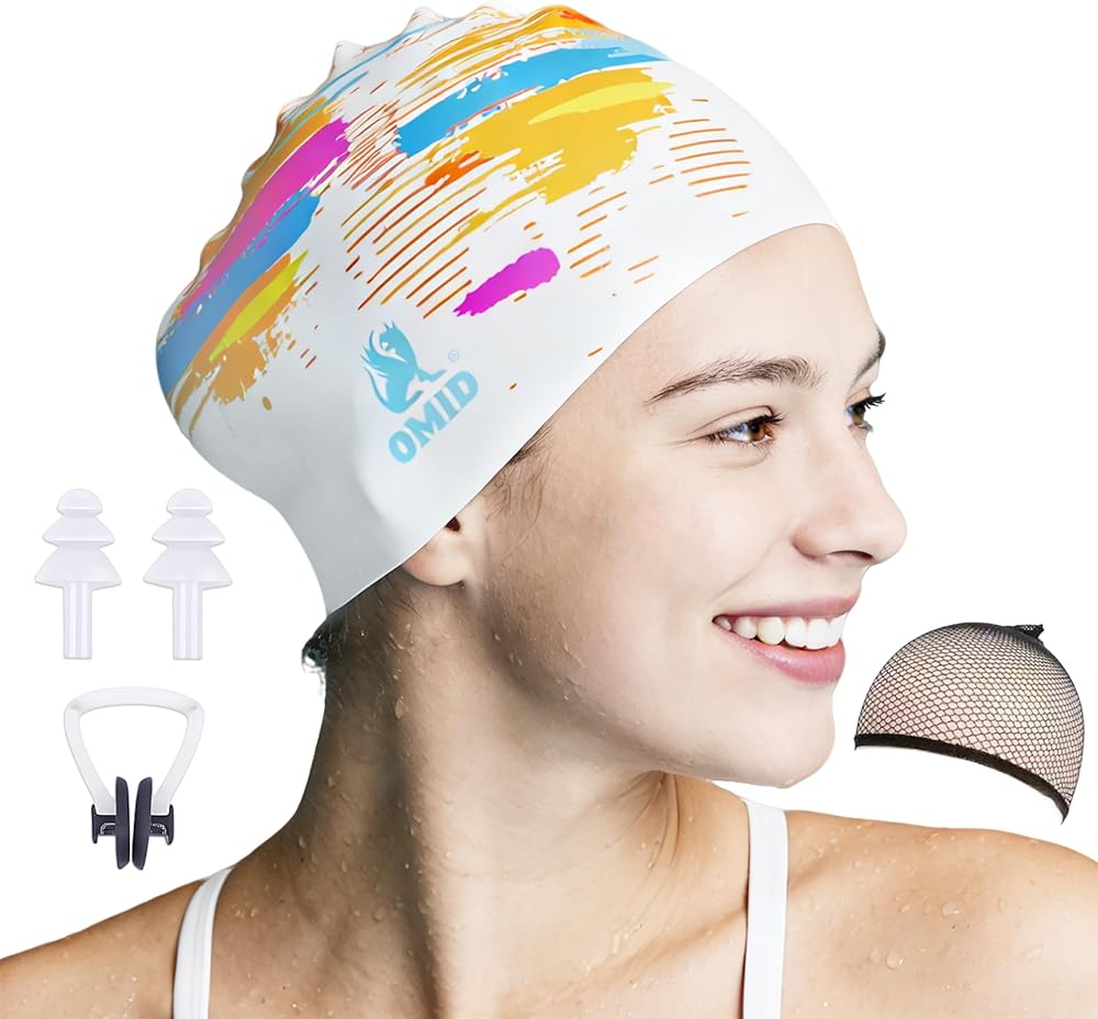 OMID Women Swim Cap for Long Hair & Thick Hair - Extra Large Silicone Design with Salon-Inspired Comfort for Curls, Braids, Dreads & Ponytails at Pool and Beach in Kuwait