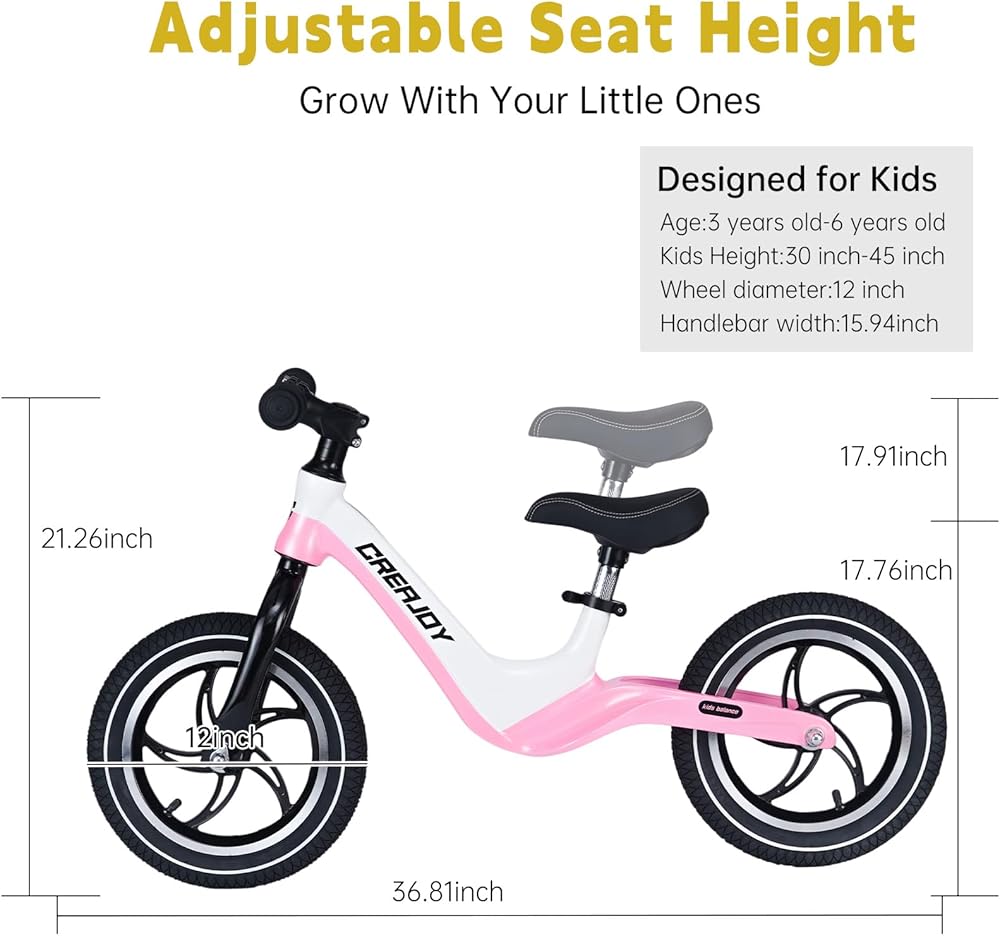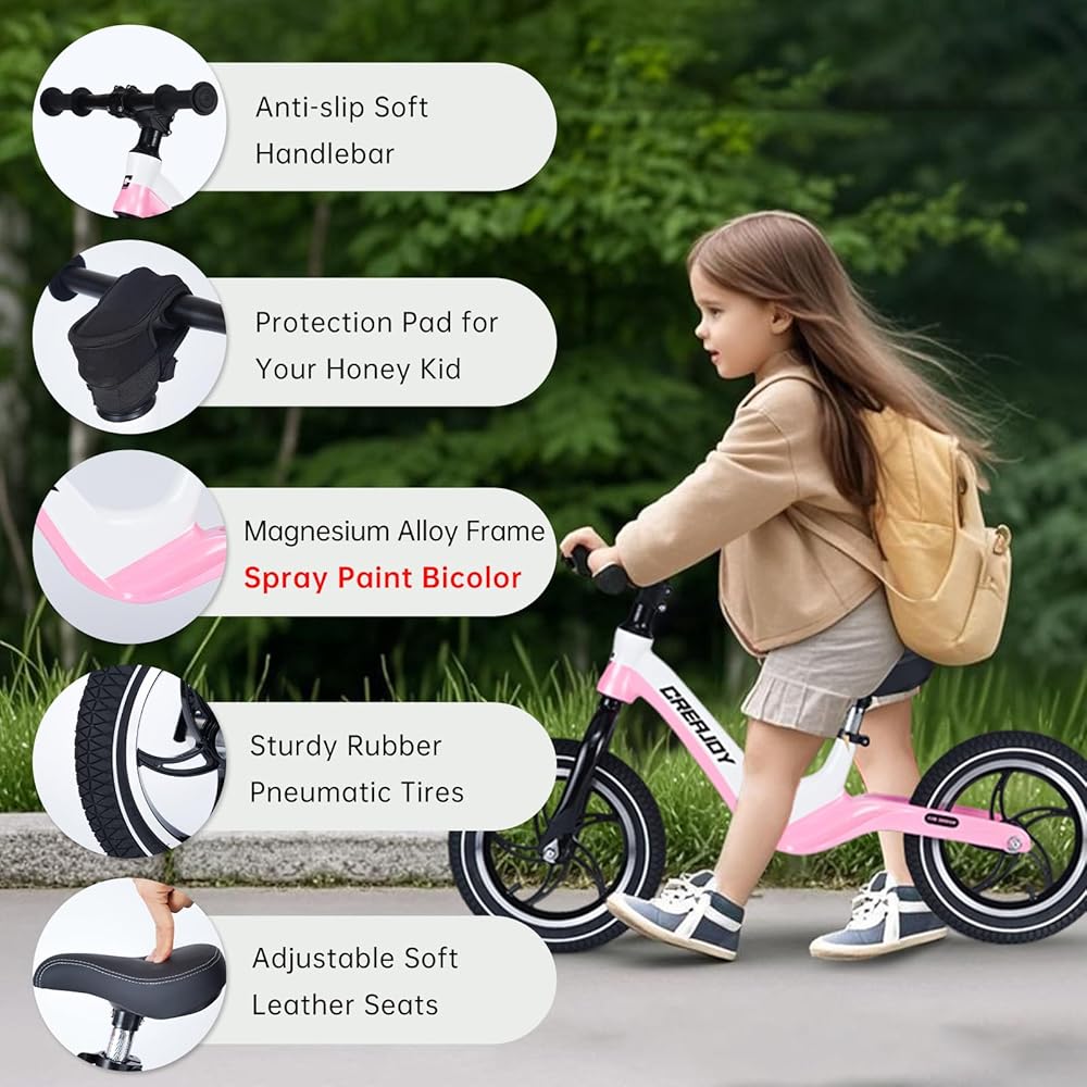 - SAFETY FEATURES: No-pedal design lets kids focus on balance, with rubber grips and a cushioned handlebar for control