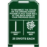 Our Proper divot easel helps golfers improve their swing techniques and consistency by providing a visual reference for the correct ball position and alignment. It also promotes better etiquette and course maintenance.