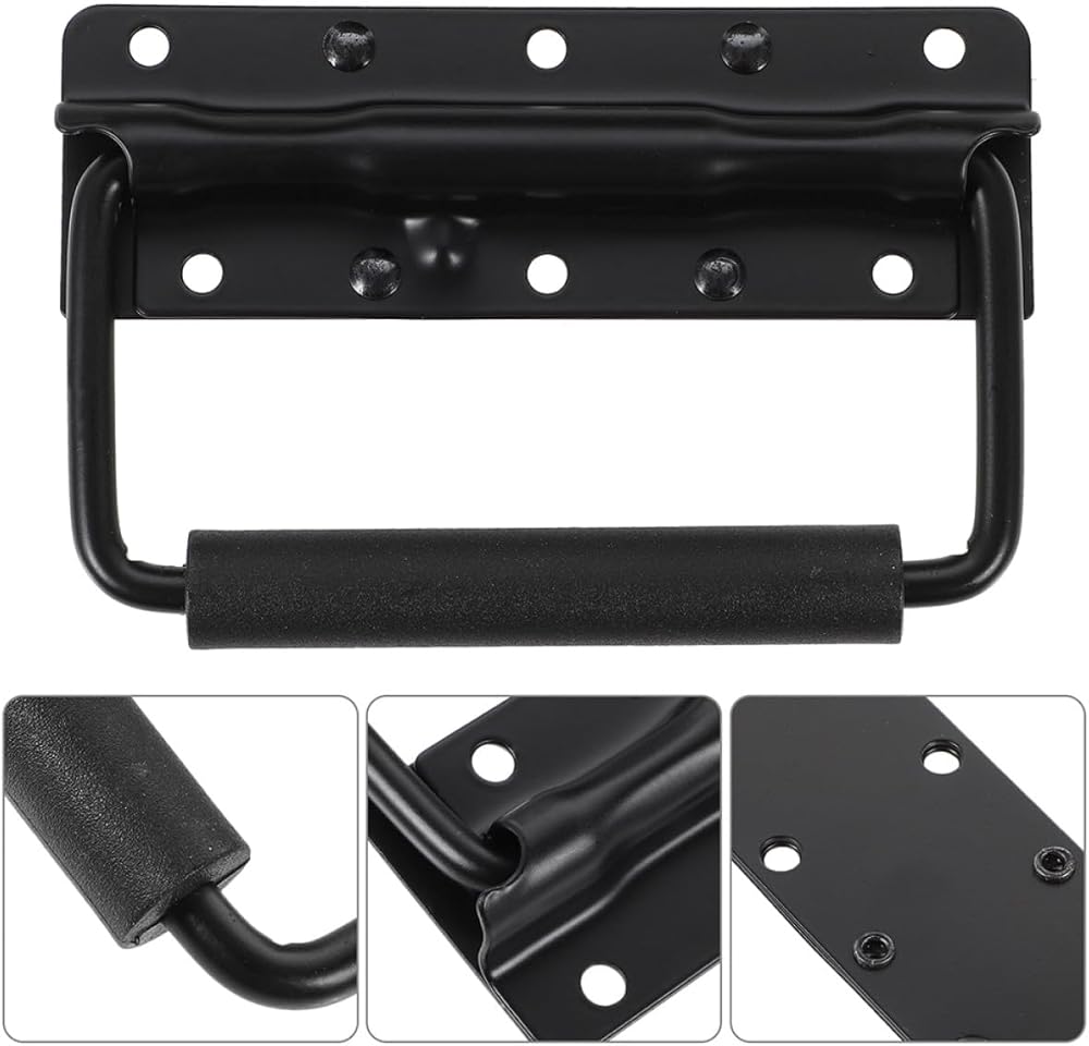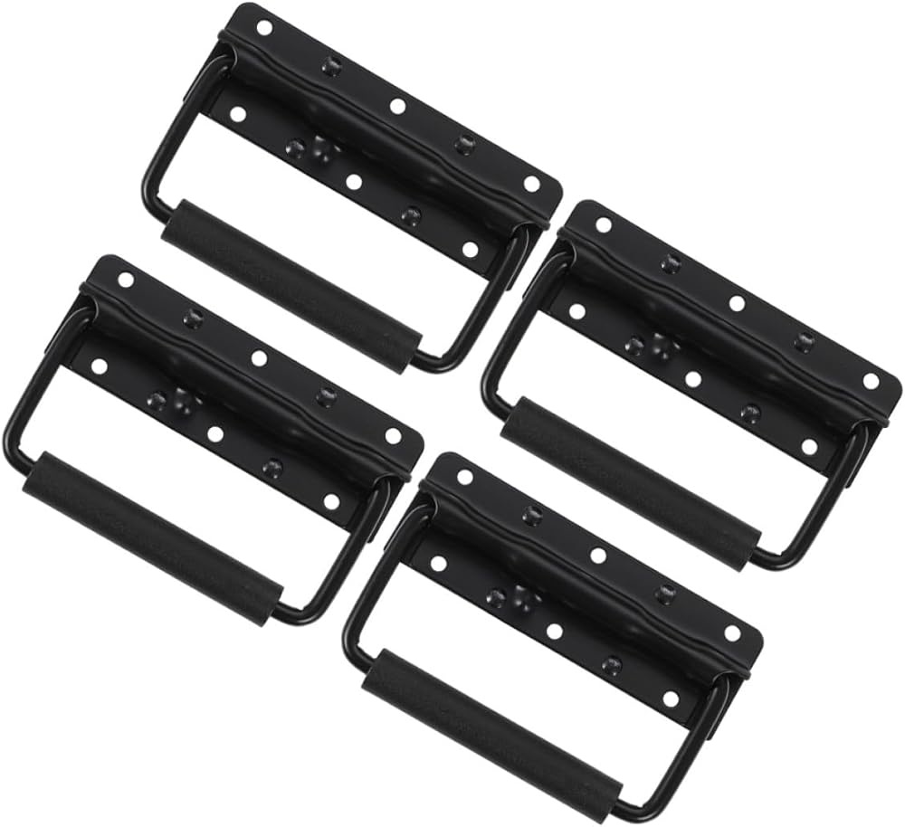 Holibanna 4pcs Black 125mm Spring Loaded Metal Case Handles, Heavy Duty Folding Pull Handles for Toolbox, Storage Chest, and Cabinet Use