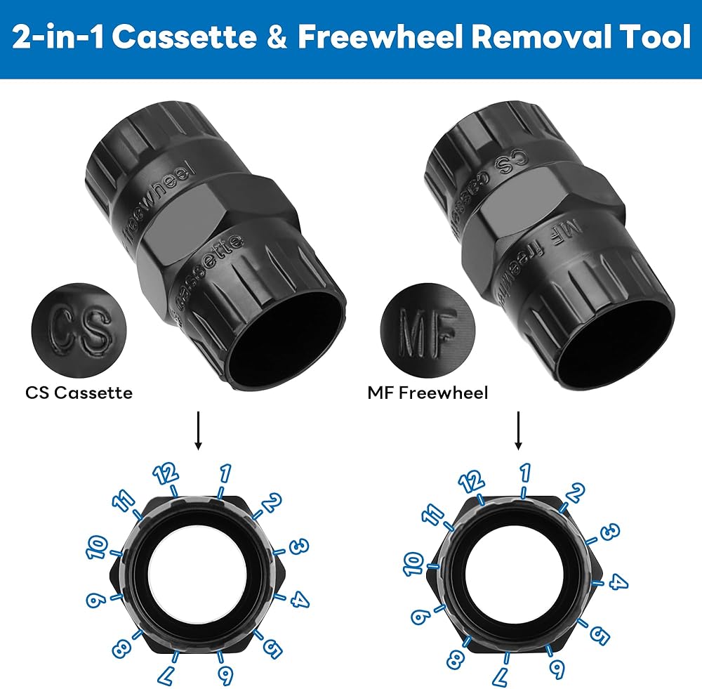 2-in-1 Saves Space & Hassle One tool for freewheel removal + cassette lockring removal—simplifies your bike drivetrain service kit and reduces bulky tool pile-up for home mechanics and bike shops.