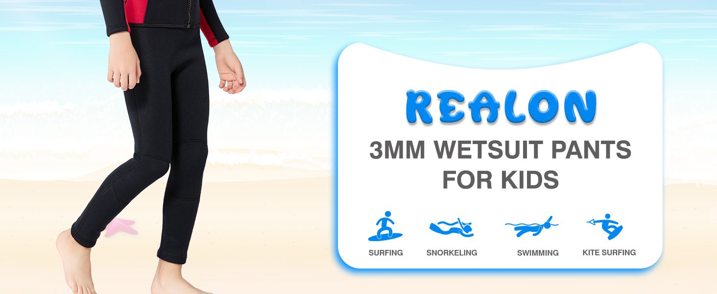Protection : REALON wetsuit pant for boys girls is crucial for enhancing safety and comfort in water activities, providing sunburn and scratch prevention, keep the body at a suitable temperature in the cold water, let children have a good experiences