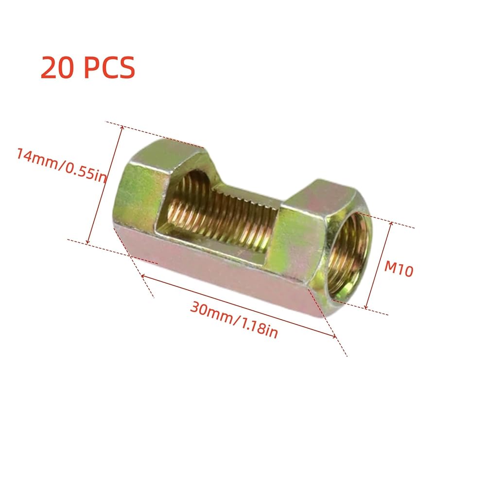 Package includes: 20 Pcs coupling nuts; Size: The size of this M10 hexagon rod coupling nut is 14x30mm/0.55"x1.18"(WxH). For other sizes, please refer to the image