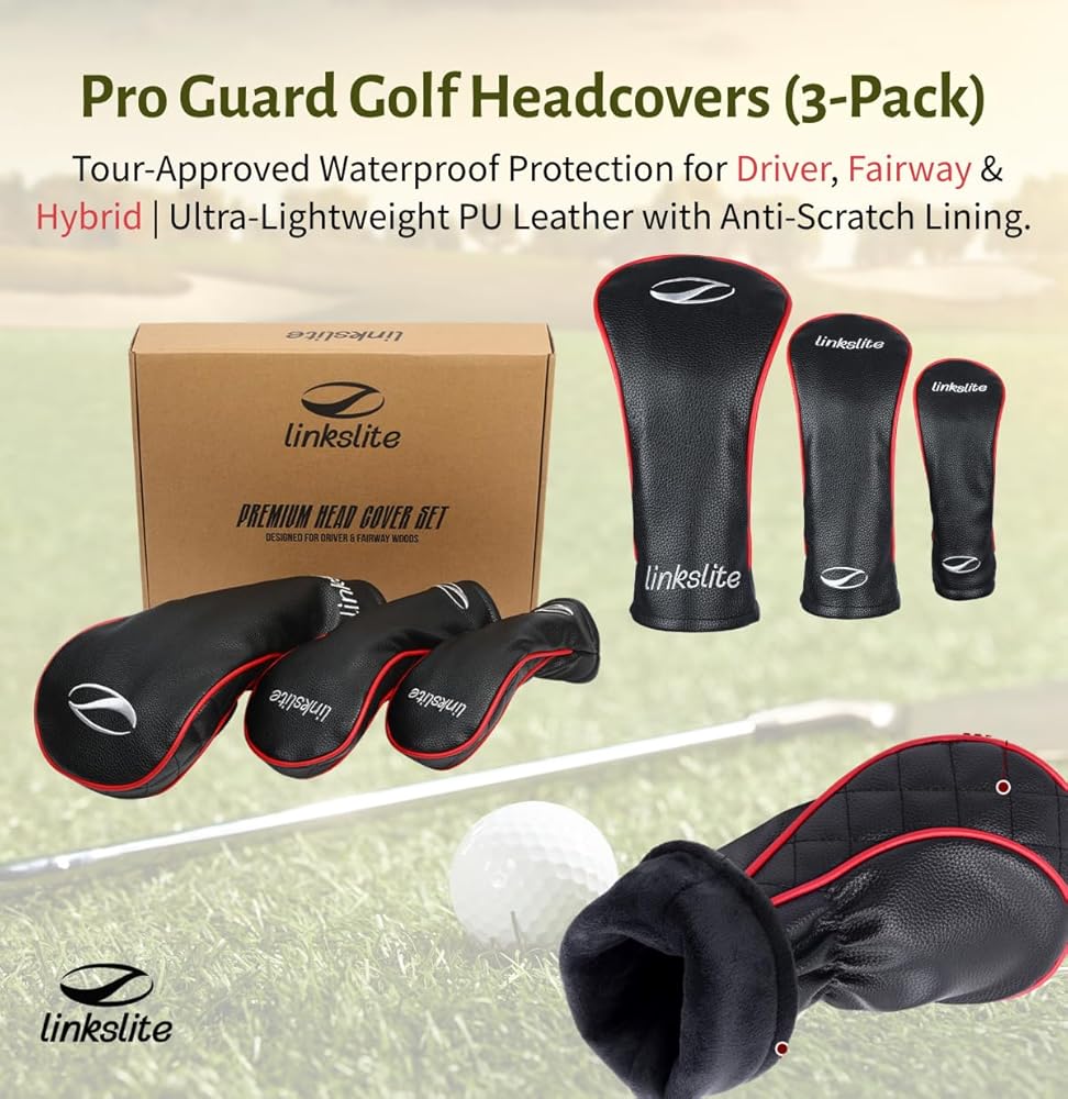 Golf Headcovers Set of 3 Driver, Fairway, Hybrid Waterproof PU Leather Scratch‑Resistant Plush Lining, Premium Gift Box