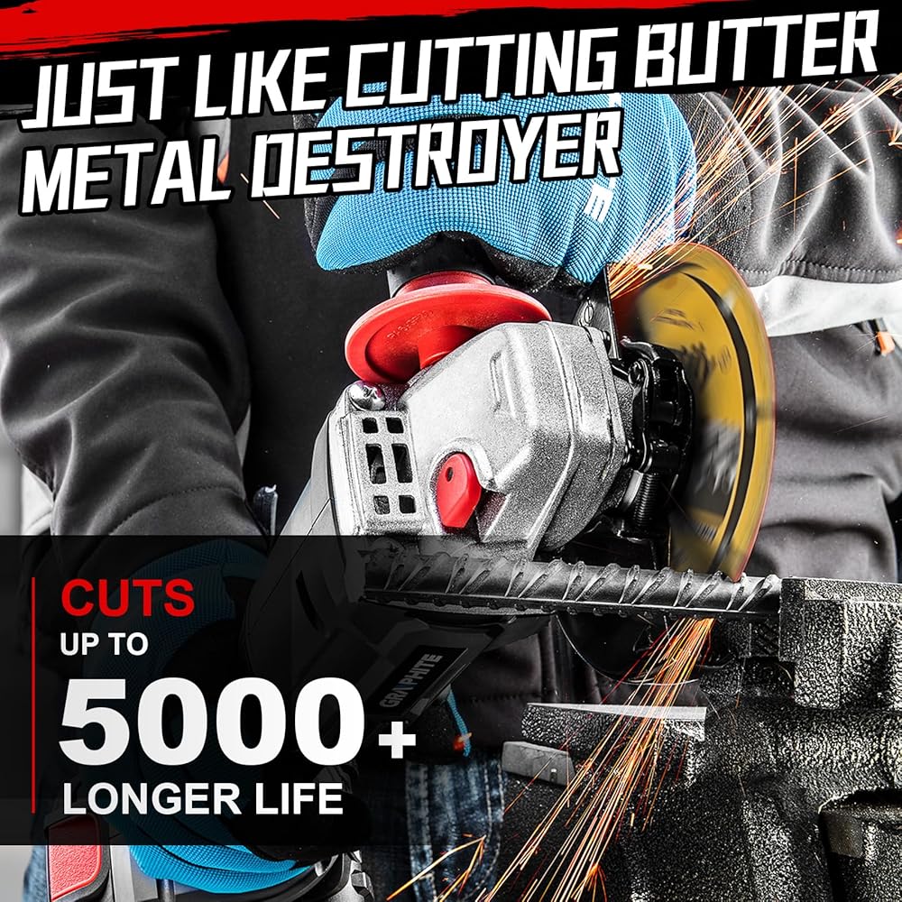 Extra long service life: Industrial-grade materials allow 4.5 in cut off wheels to last up to 120 times longer than ordinary cutting blades, completing more than 5,000 metal cuts. Reducing the frequency of changeovers while lowering the cost per cut significantly increases productivity and reduces downtime