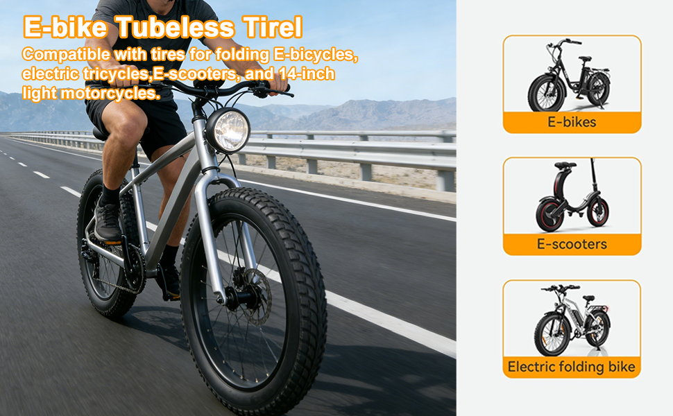 Precise Fit for E-Rides:Specifically designed as a 14x2.125 (57-254) tubeless tire, it's the perfect replacement for 14-inch electric scooter and e-bike wheels, ensuring a seamless fit.