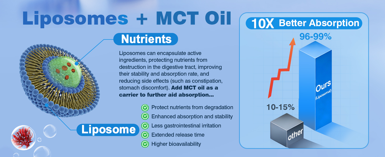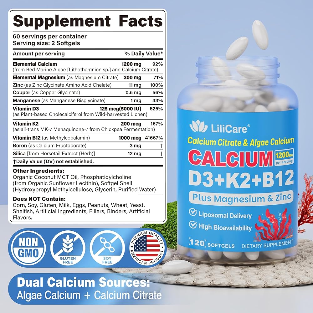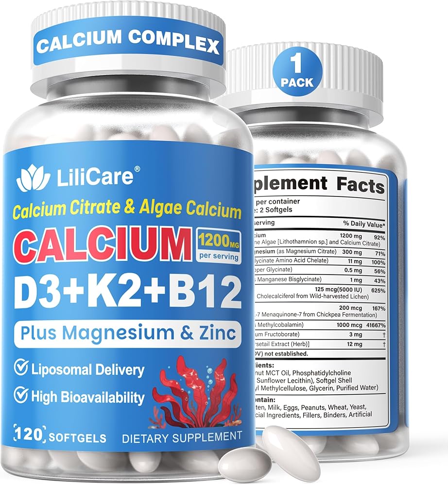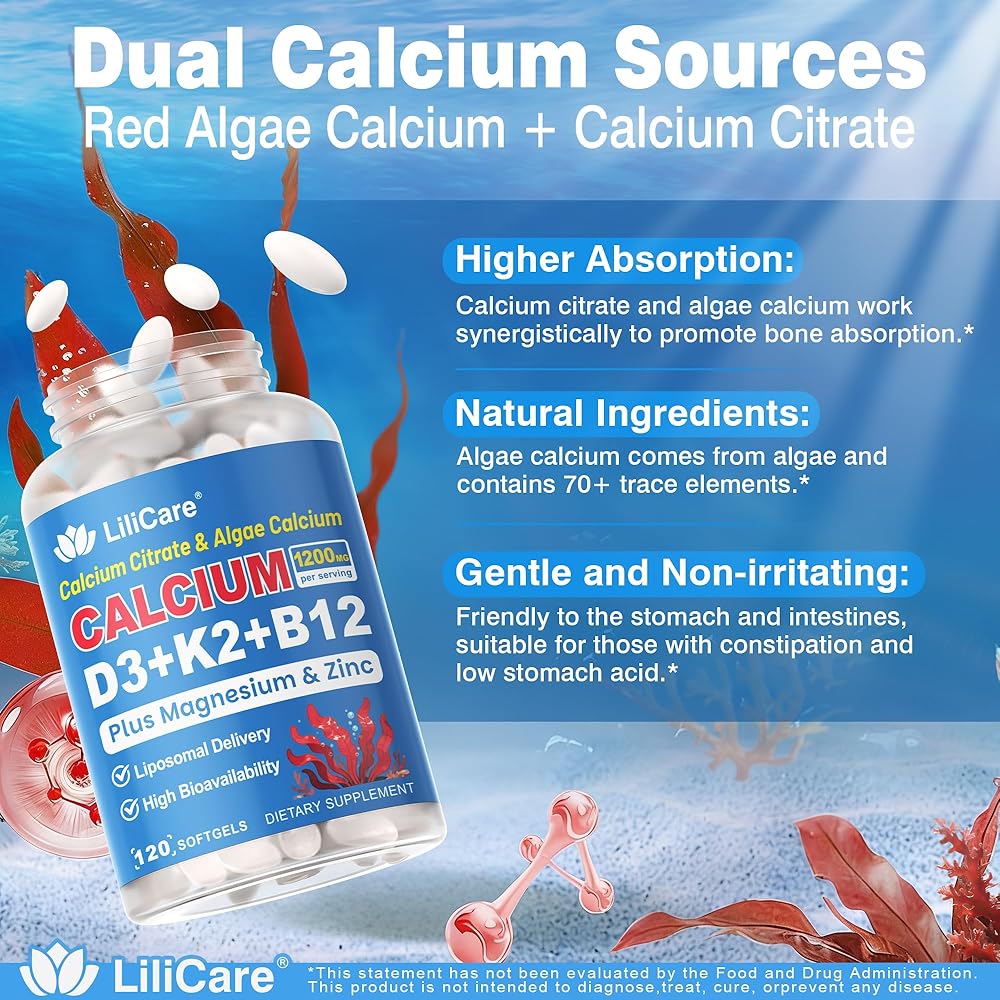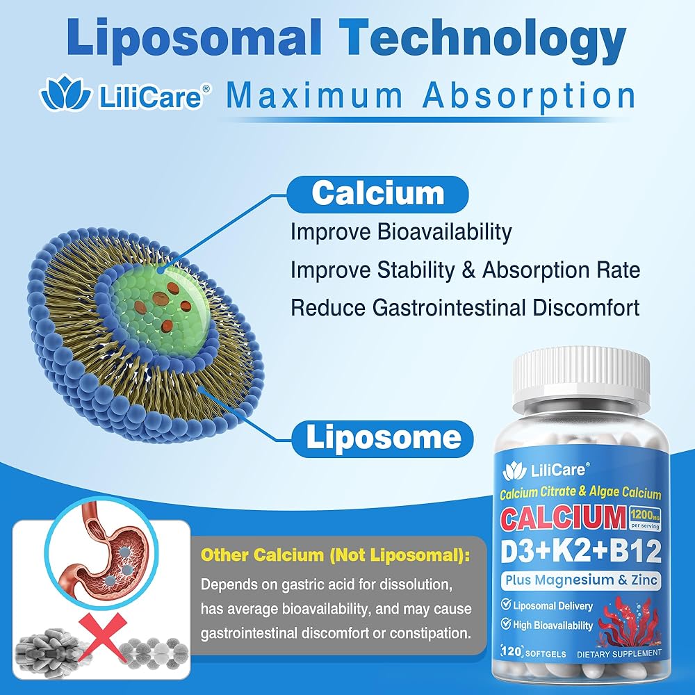 High Bioavailability, 10 Times Higher Absorption Rate with Liposomal Technology: Our calcium 1200 mg with vitamin D3 K2 supplement utilizes advanced liposomal technology to protect nutrients from stomach acid and digestive enzymes, delivering them directly into the blo★dstream for better absorption and reduced digestive discomfort. The sealed softgel capsule structure protects the active ingredients, resulting in superior bioavailability and stability compared to other forms of calcium capsules.