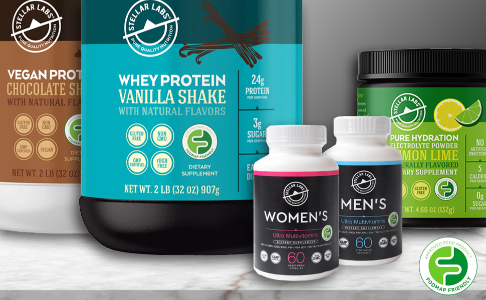 EASY TO DIGEST WITH LOW FODMAPS: Our protein powders are micronized so they're easy to mix and low FODMAP so they're easy to digest. Most of us have some type of digestive issue, and those issues could be caused by specific types of carbohydrates called FODMAP's. Those FODMAP's can cause bloating, abdominal pain, gas, and other digestive issues. Stellar Labs is Low FODMAP certified.
