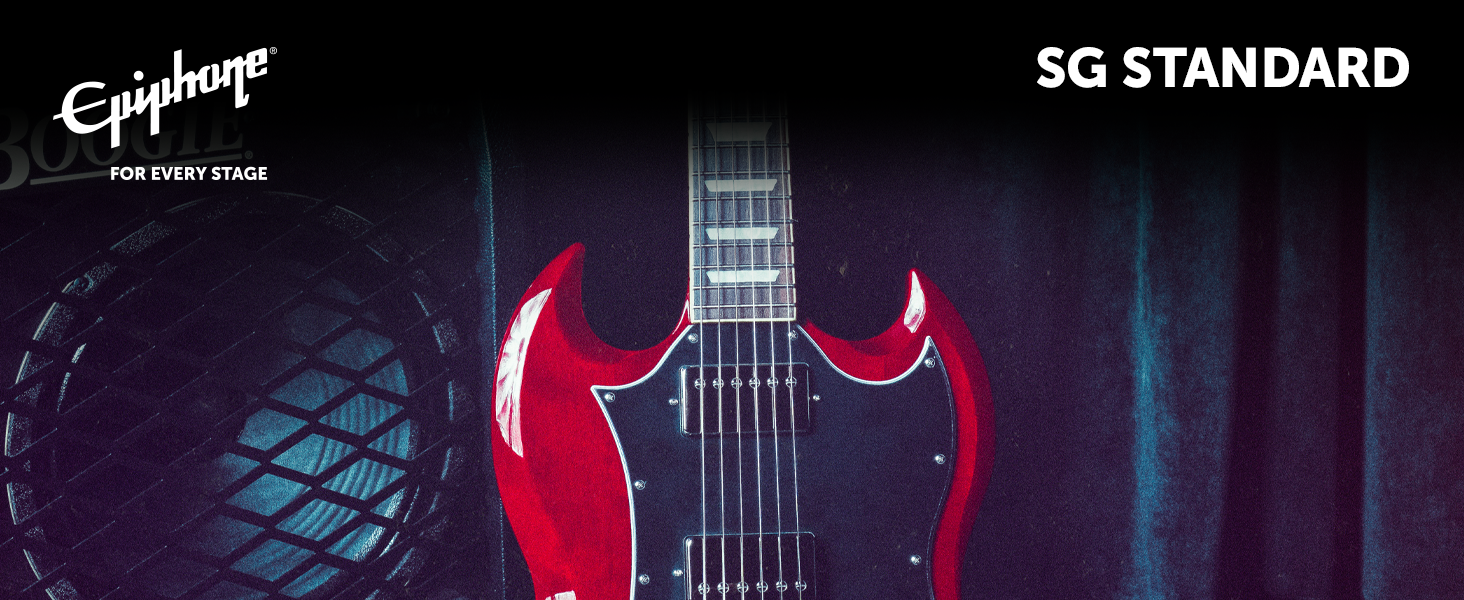 Part of the Inspired by Gibson Collection, the Epiphone SG Standard has been refreshed and is better than ever. The legendary SG has long been a favorite of musicians across genres. From Sister Rosetta Tharpe, Eric Clapton, and George Harrison to Robbie Krieger, Angus Young, Tony Iommi, and countless others, the SG has been played by many of the most beloved guitarists in history. The Epiphone SG Standard features a contoured, double-cutaway mahogany body, providing The Epiphone SG Standard features a contoured, double-cutaway mahogany body, providing unimpeded access to all 22 frets. The glued-in mahogany neck adds to the model's renowned sustain. The neck has a fast-playing SlimTaper C profile and is capped with a bound rosewood fretboard, equipped with 22 medium jumbo frets, and adorned with pearloid trapezoid inlays. The fretboard' s 12” radius makes playing first-position chords easy while ensuring that string bends don't fret out when you play them. High-quality Grover Rotomatic tuning machines and a Graph Tech nut, paired with a fully adjustable Epiphone LockTone Tune-O-Matic bridge and Stop Bar tailpiece, work together to maintain rock-soli d tuning stability and intonation. The Epiphone SG Standard is equipped with a pair of Epiphone's acclaimed ProBucker The Epiphone SG Standard is equipped with a pair of Epiphone's acclaimed ProBucker humbucking pickups that deliver all of the vintage-approved SG tones you could ask for. A ProBucker 2 humbucker is in the neck position, and a slightly hotter ProBucker 3 is install ed in the bridge position. Each of the pickups is wired to its own individual volume and tone controls, along with a three-way toggle pickup selector switch, which lets you use either pickup alone or combine them in whatever ratio suits your mood and muse. The Epiphone SG Standard is sure to turn heads and will impress players and fans alike. It comes complete with a premium gig bag to help keep it safe when traveling.