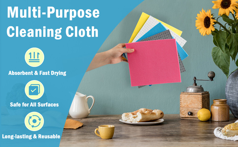 تدوم طويلاً وقابلة لإعادة الاستخدام: مناشف الأطباق السويدية من آيديا تلغي الحاجة إلى المناشف الورقية التي تُستعمل لمرة واحدة، أو قطع الأطباق، أو المناديل المبللة؛ تحمل عدة أسابيع من الاستخدام. قابل للغسل وقابلة لإعادة الاستخدام. تقليل الاعتماد بشكل كبير على المنتجات التي تستخدم لمرة واحدة