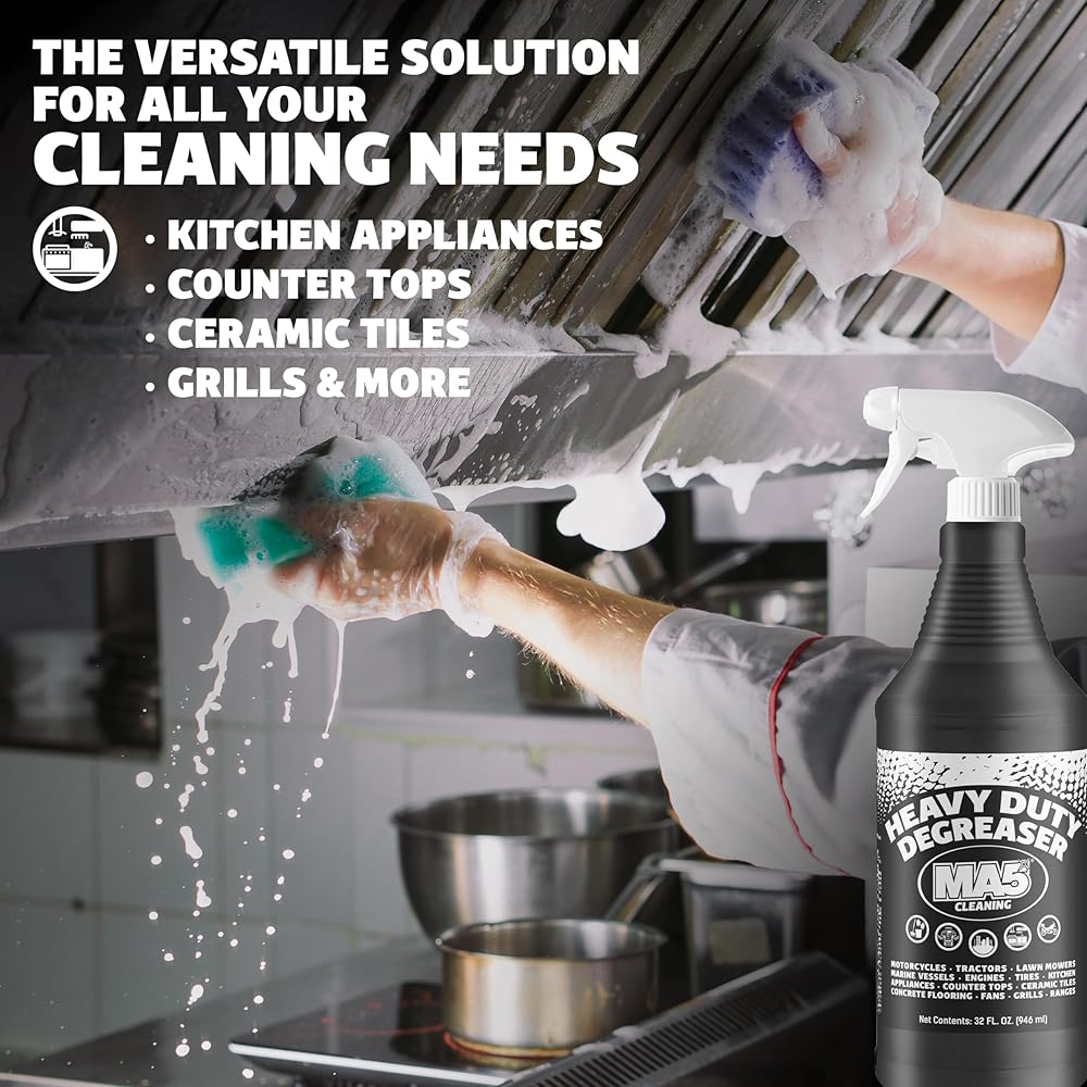 Introducing MA5x Heavy Duty Degreaser and Cleaner - For Appliances, Grills, Stovetops, Concrete, Tools, Engines, Fiberglass, Aluminum, Stainless Steel and Kitchen Surfaces - MSS Heavy Duty Degreaser - It is a powerful and versatile cleaning solution that can be used on a wide range of surfaces, including appliances, grills, stovetops, concrete, tools, engines, fiberglass, aluminum, stainless steel, and kitchen surfaces. It is designed to tackle tough grease, oil, and dirt, making it an essential tool for any homeowner or professional looking to keep their surfaces clean and spotless. The MA5x Heavy Duty Degreaser is formulated with a blend of powerful chemicals that are effective at breaking down stubborn stains and grime, without causing any damage to the surface. One of the key features of the MA5x Heavy Duty Degreaser is its ability to penetrate deep into pores and crevices, making it ideal for removing stains that have been deeply ingrained in the surface. It is also effective at removing rust, corrosion, and other types of buildup, which can help to improve the appearance and performance of your appliances and other equipment. Another benefit of the MA5x Heavy Duty Degreaser is its long-lasting performance. It is designed to be used repeatedly, and will not lose its effectiveness over time, making it a cost-effective solution for cleaning and maintenance. The MA5x Heavy Duty Degreaser is also easy to use, and can be applied directly to the surface using a spray bottle or brush. It is quickly absorbed into the surface, and will not leave any residue or film behind, making it an ideal solution for use in areas where cleanliness is essential, such as kitchens, bathrooms, and workshops.