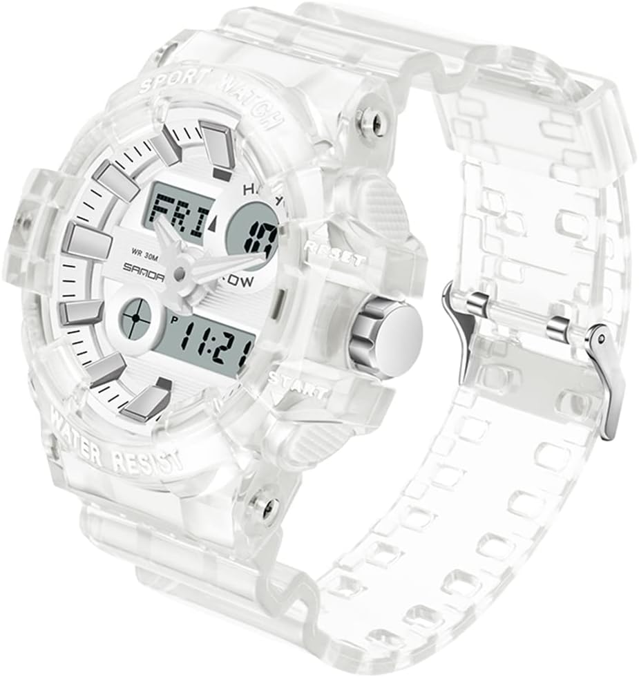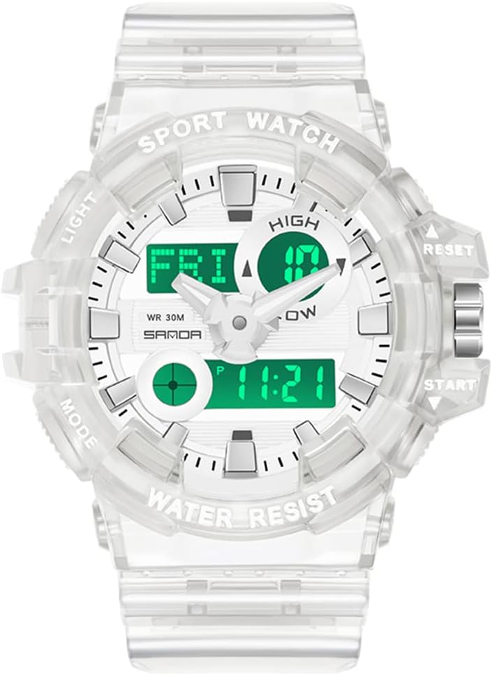 【Soft resin band 】makes this sports watch comfortable to wear, won't feel too tight or too loose on your wrist with an adjustable band. Durable senior transparent plastic case and mineral glass mirror provide a better user experience.