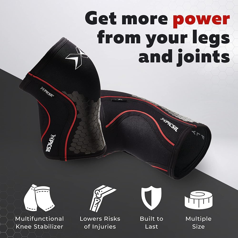 PICSIL Knee Sleeves 5&7mm (1 Pair) Support & Compression for Weightlifting, Powerlifting & Cross Training, Premium Protective Knee Pads for Comfort and Safety, Women & Men