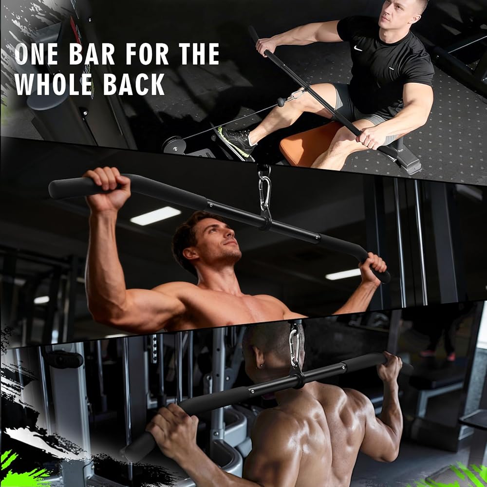 Upgraded 1.3"Diameter Grip and Comfortable Rubber Grip-The grip diameter has been upgraded to 1.3 inches, compared to other 1-inch or even smaller. The LAT Pulldown Attachment design to be hold comfortably in your palm ,making it an ideal bar for training