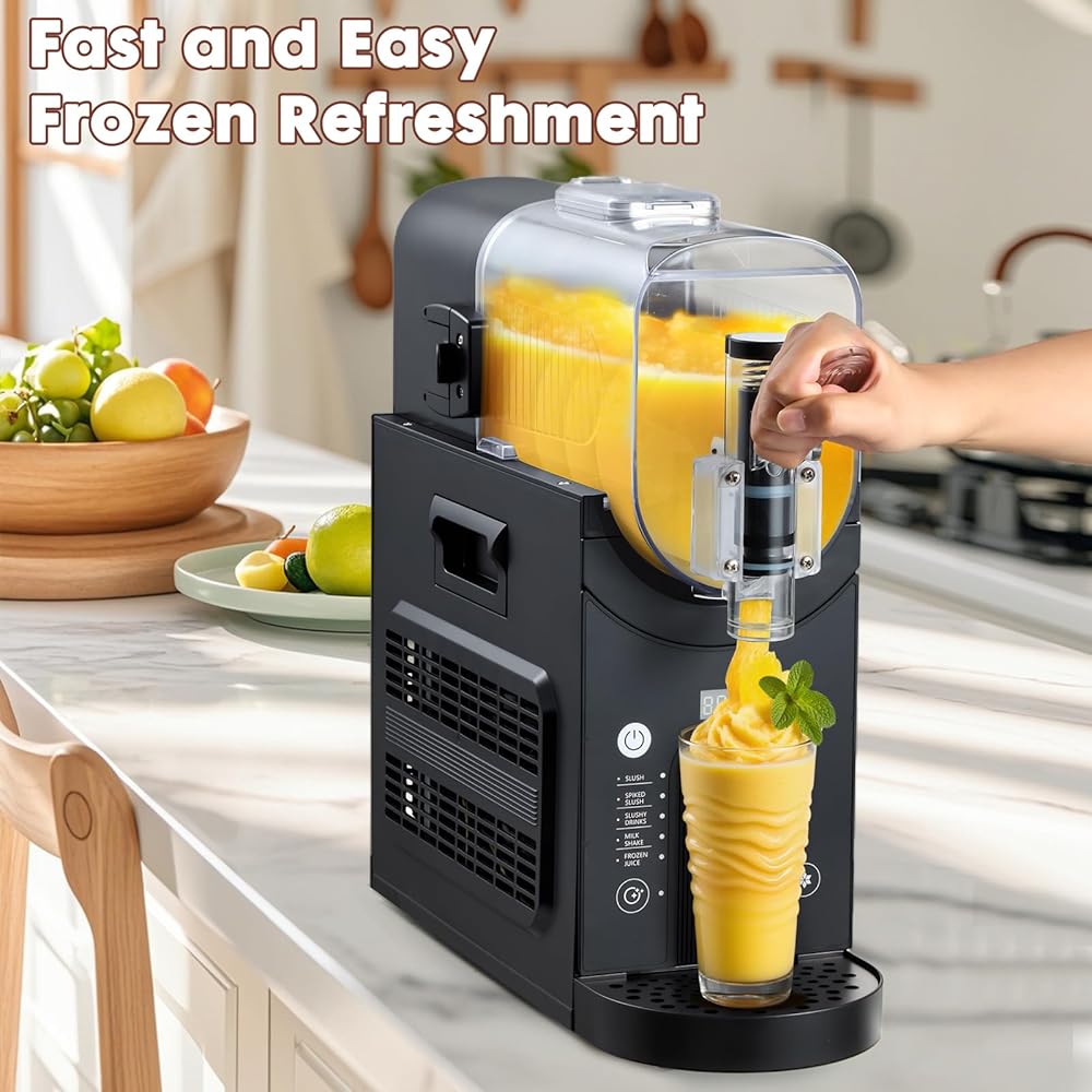 EASY TO DISPENSE: No spoons or tablespoons are needed with this beverage dispenser. With a gentle pull of the lever, this 2.5L frozen drink dispenser pours drinks directly into your cup